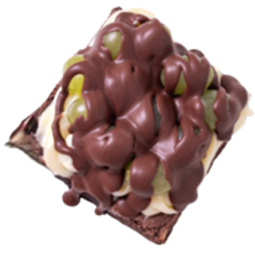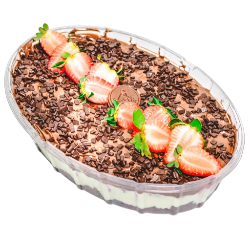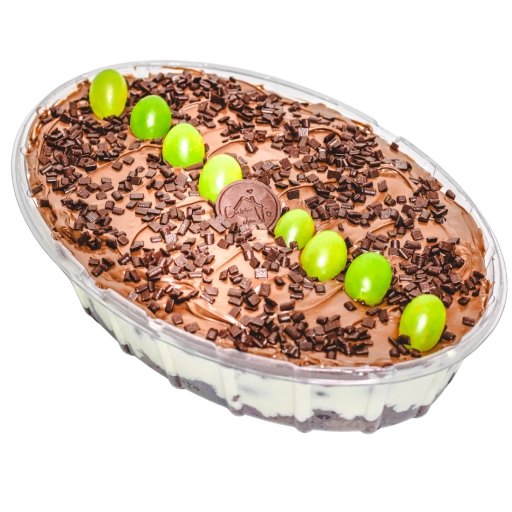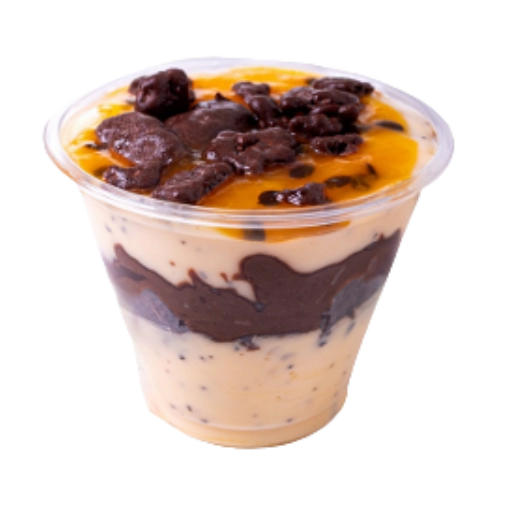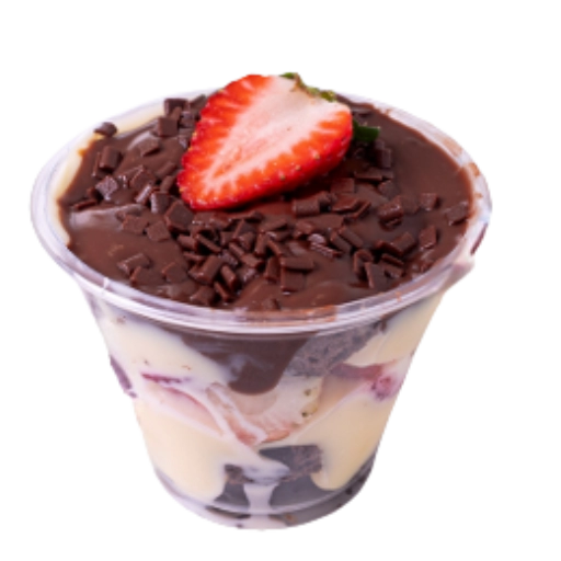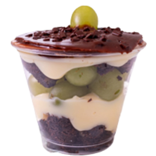 Uvas Thompson, creme de ninho, brownie especial, pedaços de chocolate ao leite e Nutella.