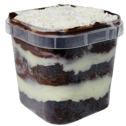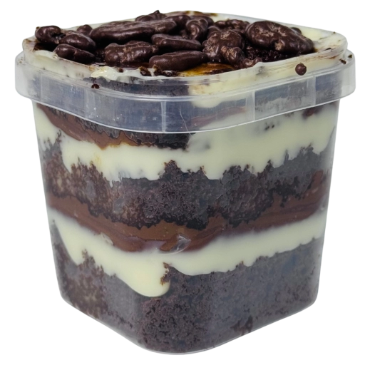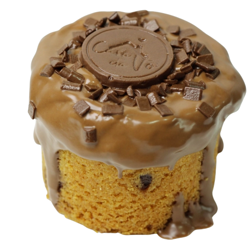 Massa de pão de ló de chocolate, recheada com ganache de especial de Prestígio e chocolate meio amargo.