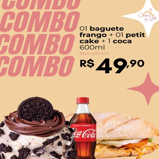 1 BAGUETE FRANGO + 1 PETIT CAKE + 1 REFRI 600ML.