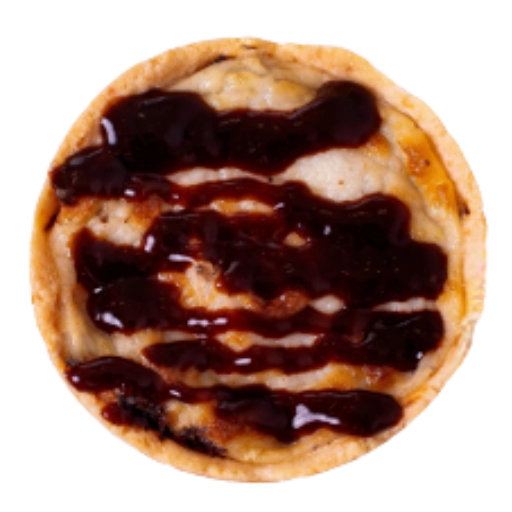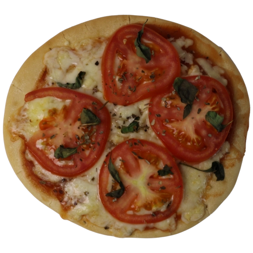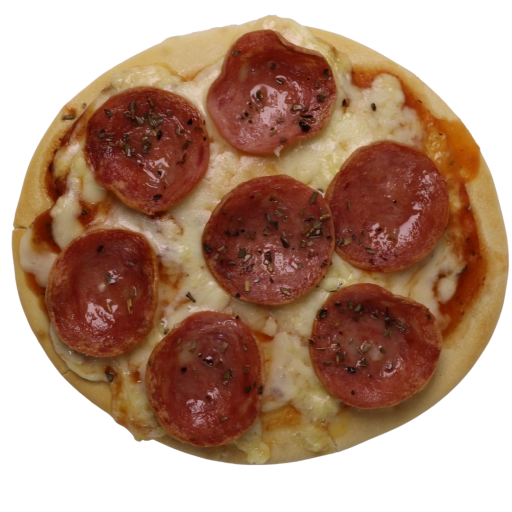 Mini pizza de calabresa, queijo muçarela e orégano.