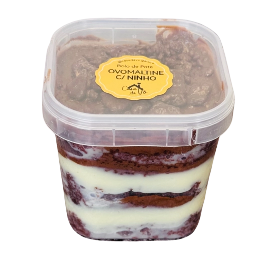 Bolo de chocolate, com recheio e cobertura de creme de ovomaltine.